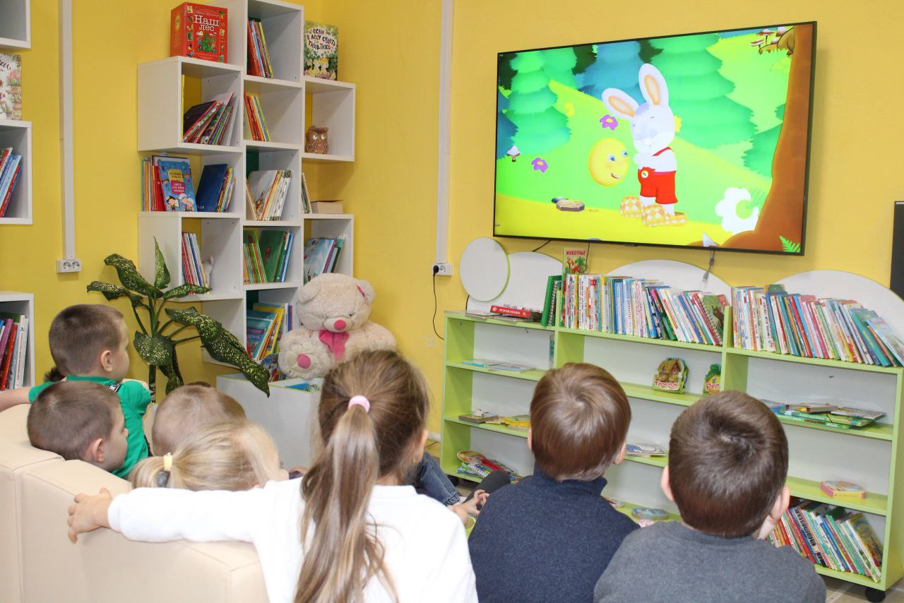 Дети не только получили полезную информацию, какие книги живут на библиотечных полках и где именно искать то или иное издание, но и пообщались с роботом Читайкиным, посмотрели мультфильм.